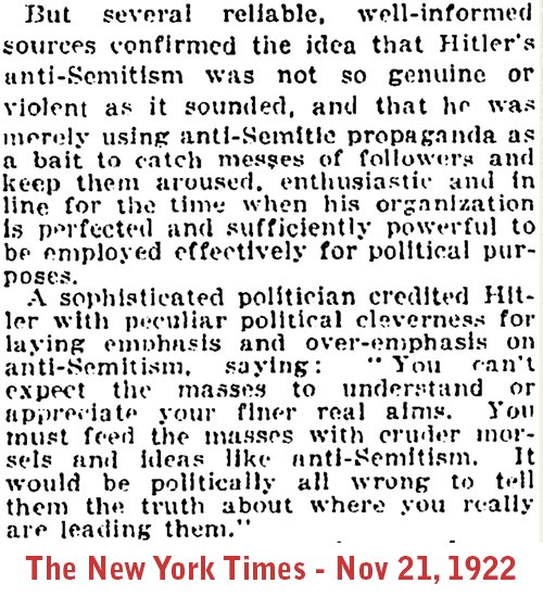 said Hitler's racism was just an entertainment ploy to fool the masses into his real... more politically savvy agenda.