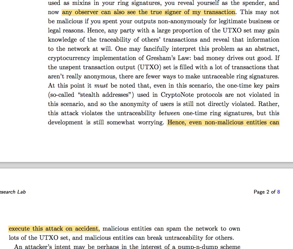Also two of the Monero Research Lab papers both identify and quantify the problem, and then suggest solutions to it. At no point do the papers dismiss them as theoretical: https://pbs.twimg.com/media/C9nIqDmUQAAqP-R.jpg:large