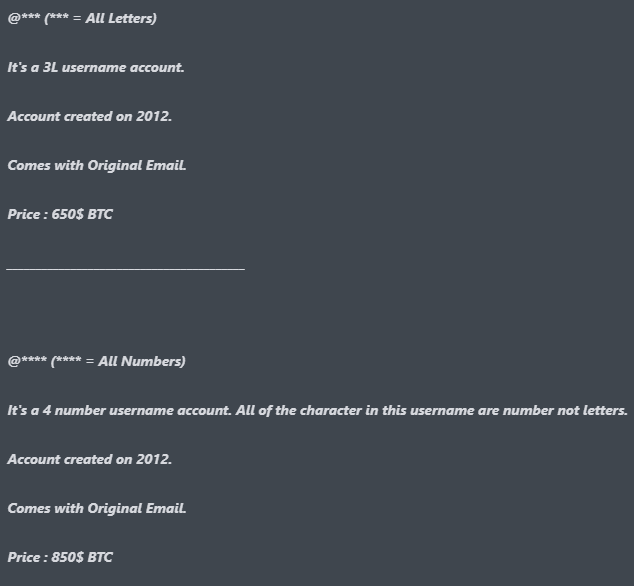 The underground marketplace for desirable social media handles (OG Handles) was explored in this excellent episode of Reply All: The Snapchat Thief [1].