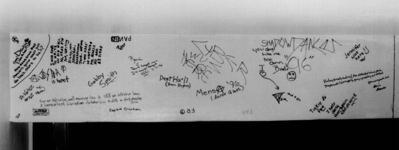 The inherent locality of BBSes was pretty nice however, sure there were some long distance users but most people on most boards were local. I recently rediscovered this photo where 16 year old me recreated the on-login BBS quote wall by asking BBS friends that came over to sign my wall: https://nt4tn.net/photos/wall.jpg