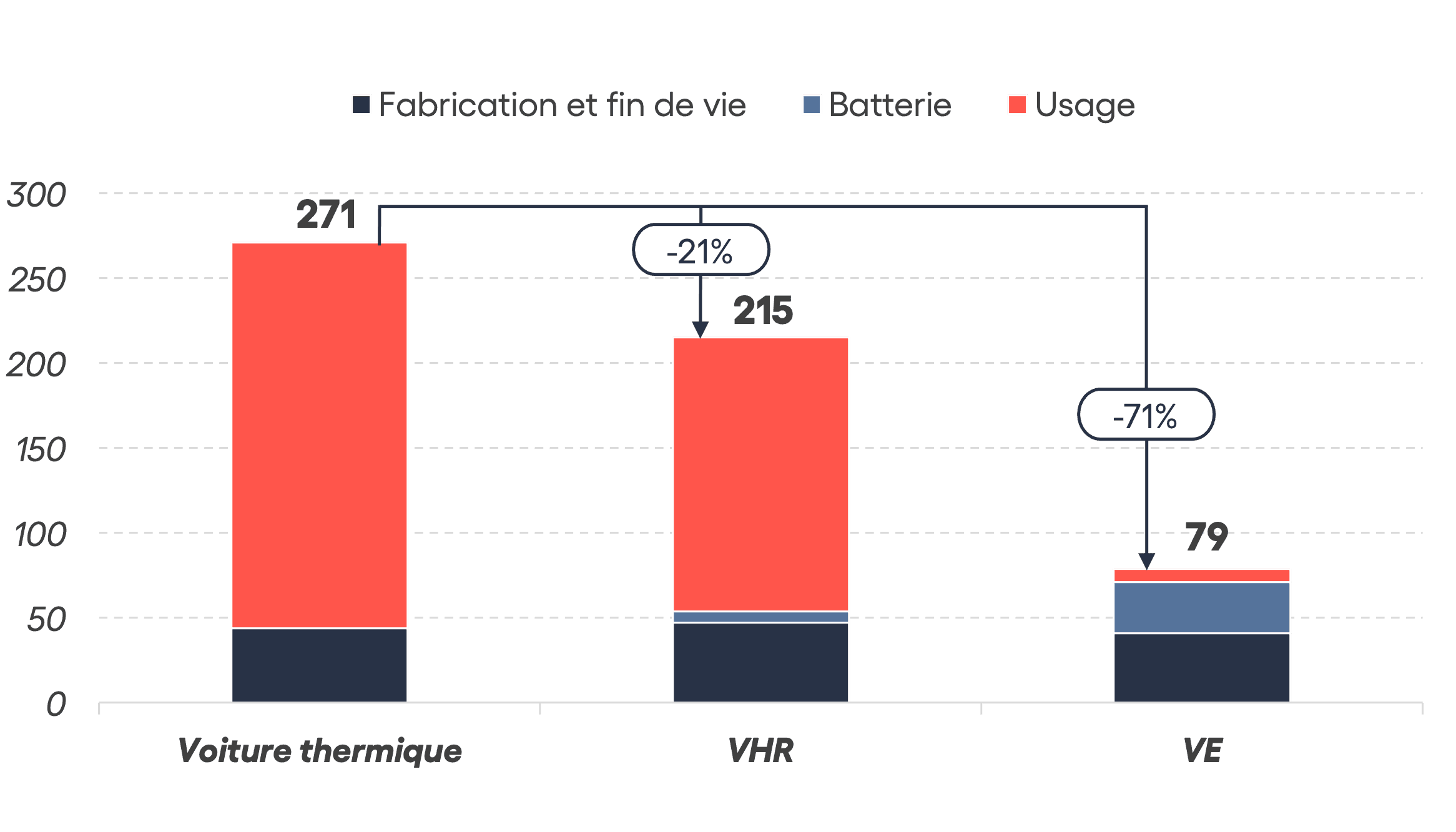 (accounting for electricity from a Nuclear Power plant in France, VH = hybrid, VE = electric, Thermique = Combustion Engine)Granted, it would be better to have no car at all but on this front, the US is doomed.